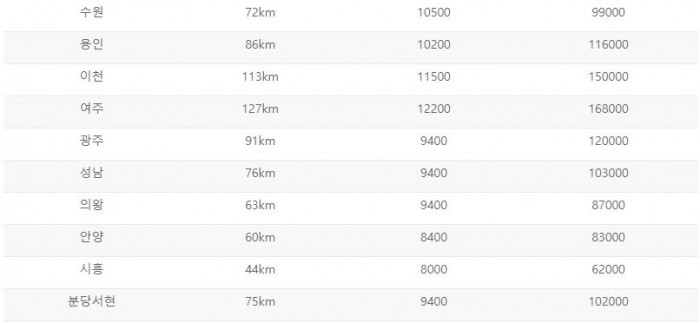 홈 > 이용 요금 > 인천공항 기준